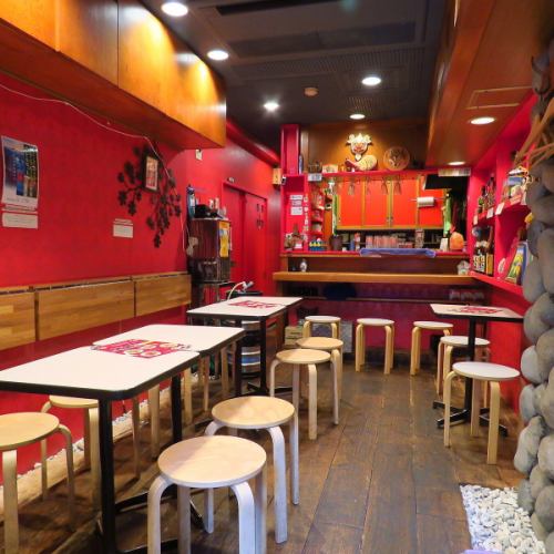 赤い壁が印象的な異国情緒溢れる店内。温かい雰囲気が女性にも人気♪お席は、カウンター席やテーブル席など様々なシーンでご利用ができます。お一人様やカップルにもおすすめです!